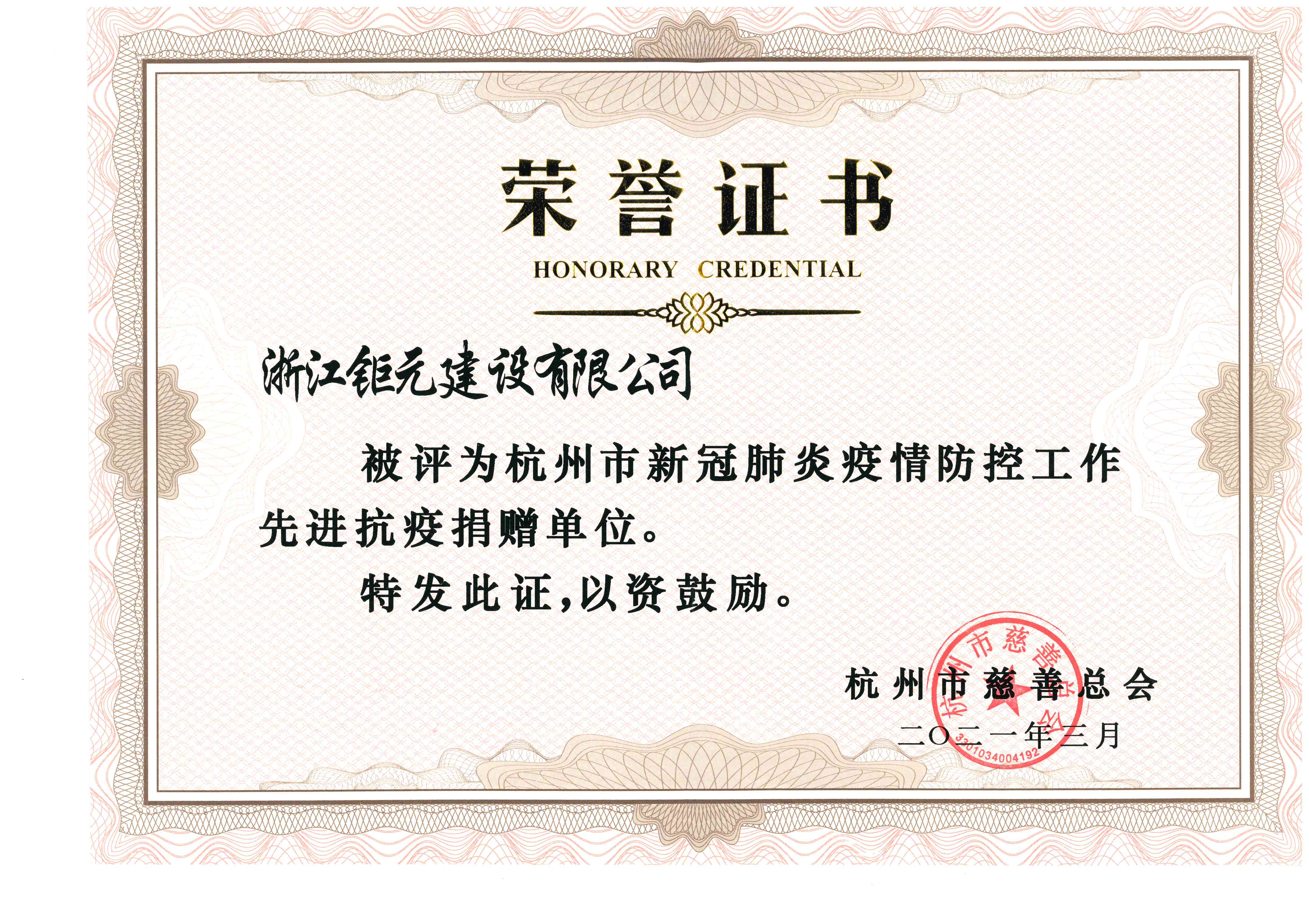 杭州市新冠肺炎疫情防控工作先进抗疫捐赠单位